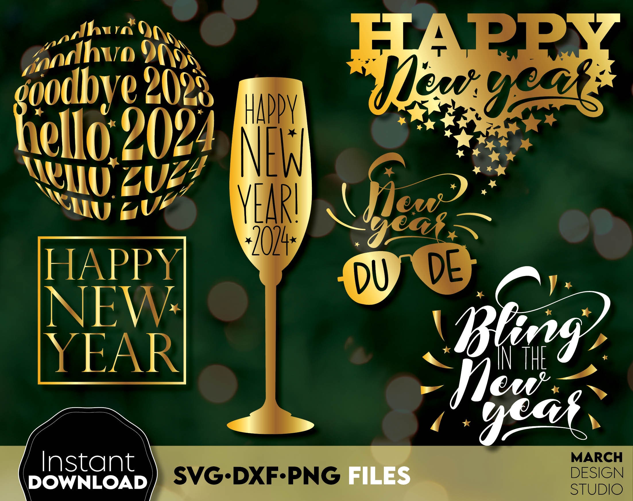 Happy New Year 2024 SVG Bundle Hand Lettered New (Instant Download
