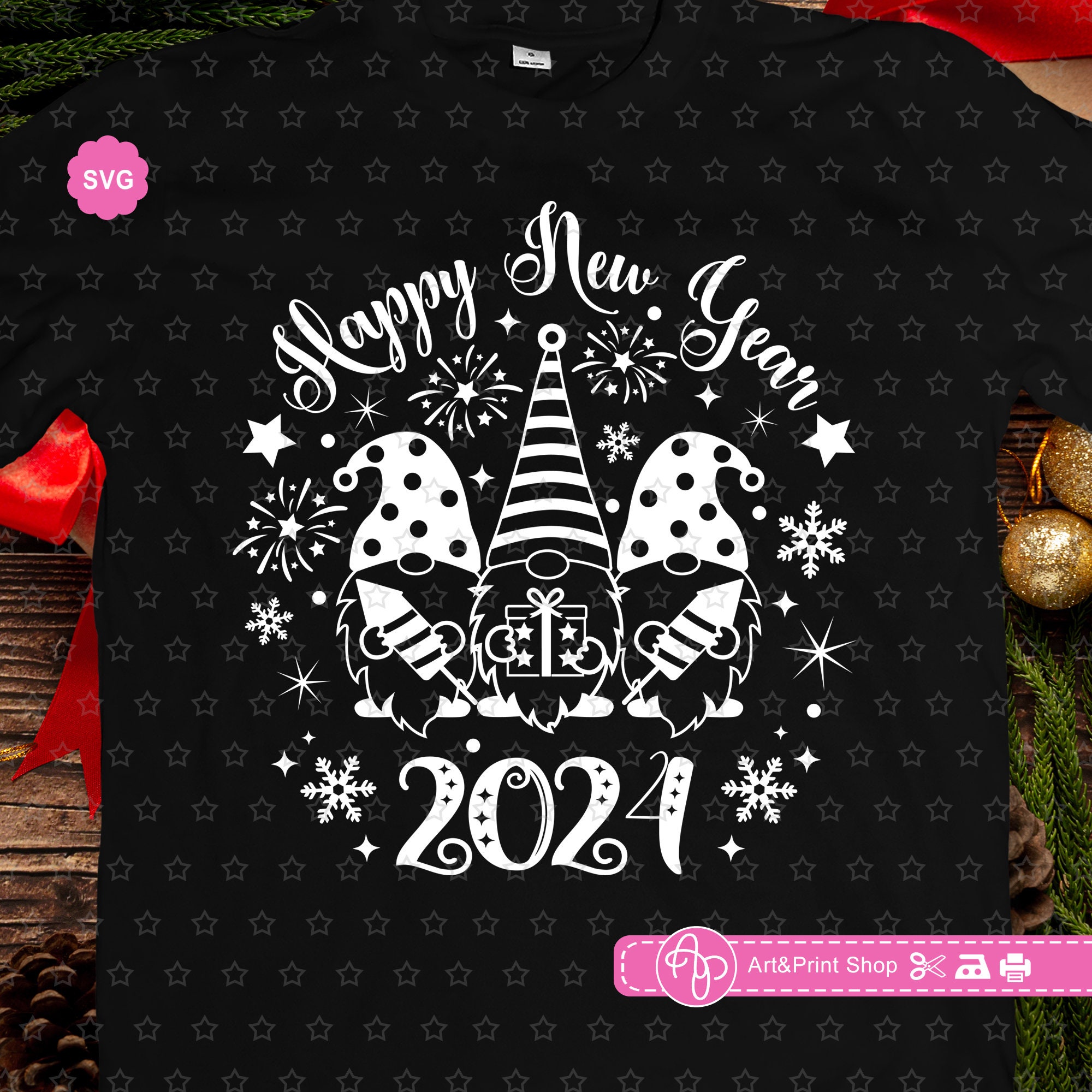 Happy New Year 2024 Svg Afbeelding door Black Cat Studio