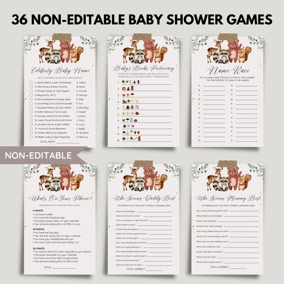 Woodland Animal Baby Shower Games Bundel niet bewerkbaar Etsy België