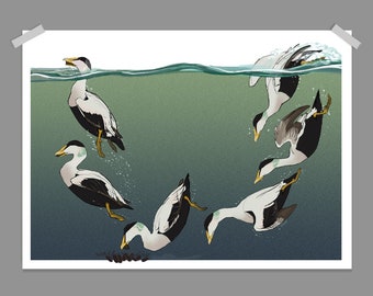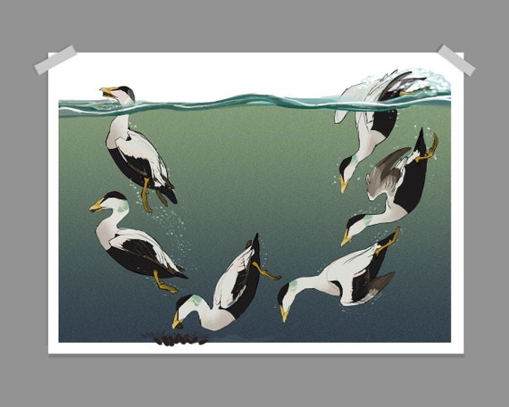 Duiken Eider Duck Science Art Print Poster A4/A3 Schilderen Etsy