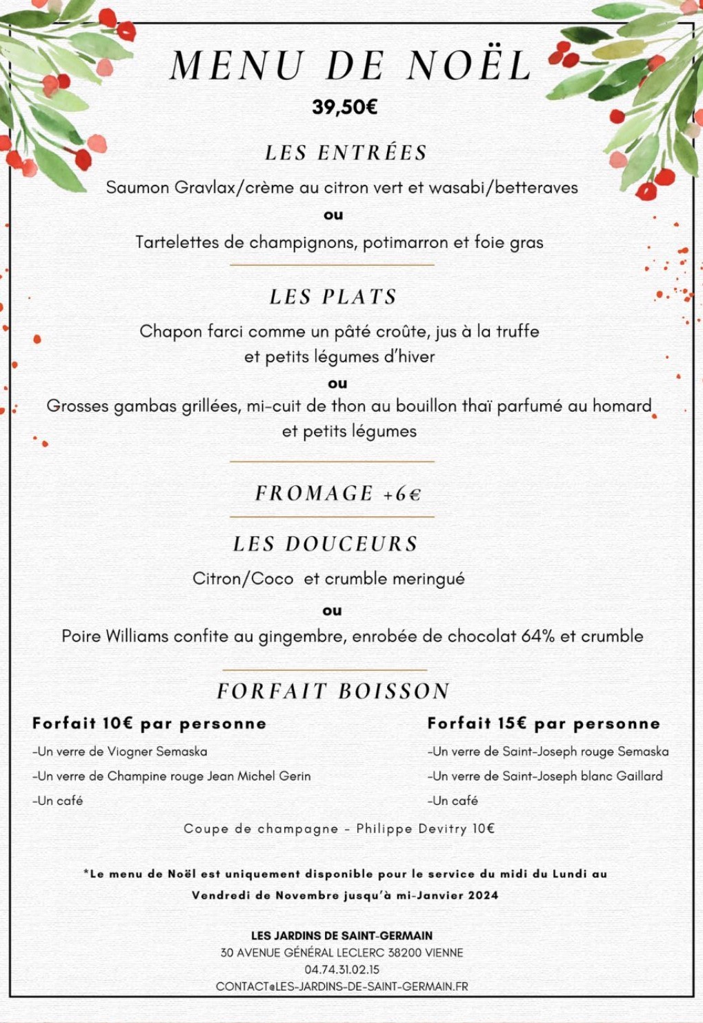 Menu de Noël aux Jardins de Saint Germain Vienne Condrieu Tourisme