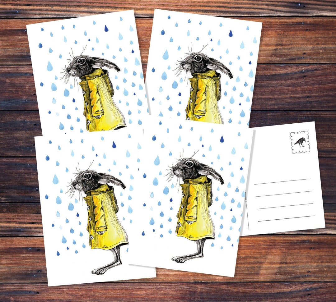 Postkarten 5 Pieces: Standing in the Rain Etsy